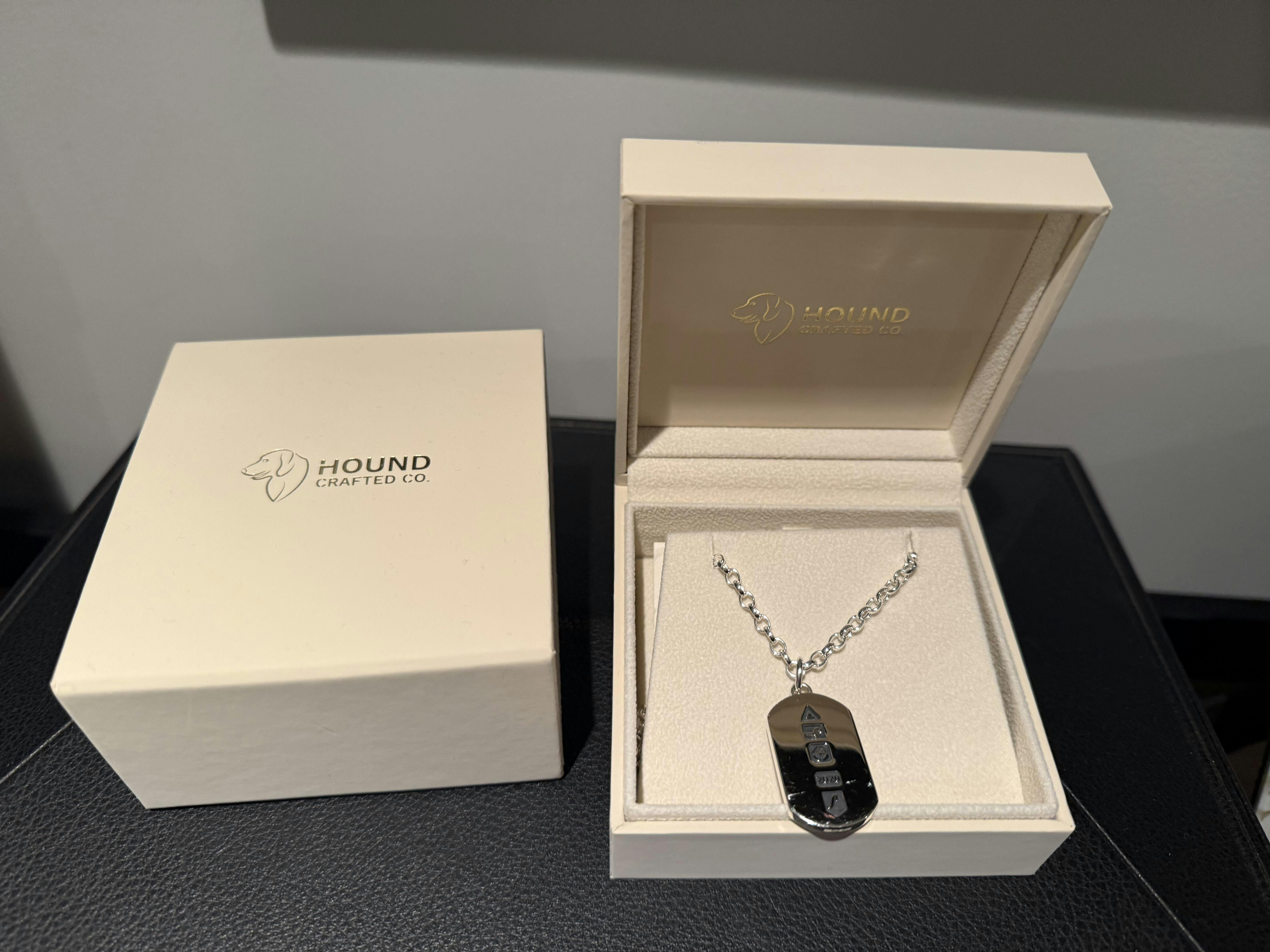 Great communication, kept me informed along the production process. The team weren’t totally happy as was a small mark on the pendant and rather than send to me, they sent me a picture of the fine scratch to show me what they were worried about and then refinished the necklace.